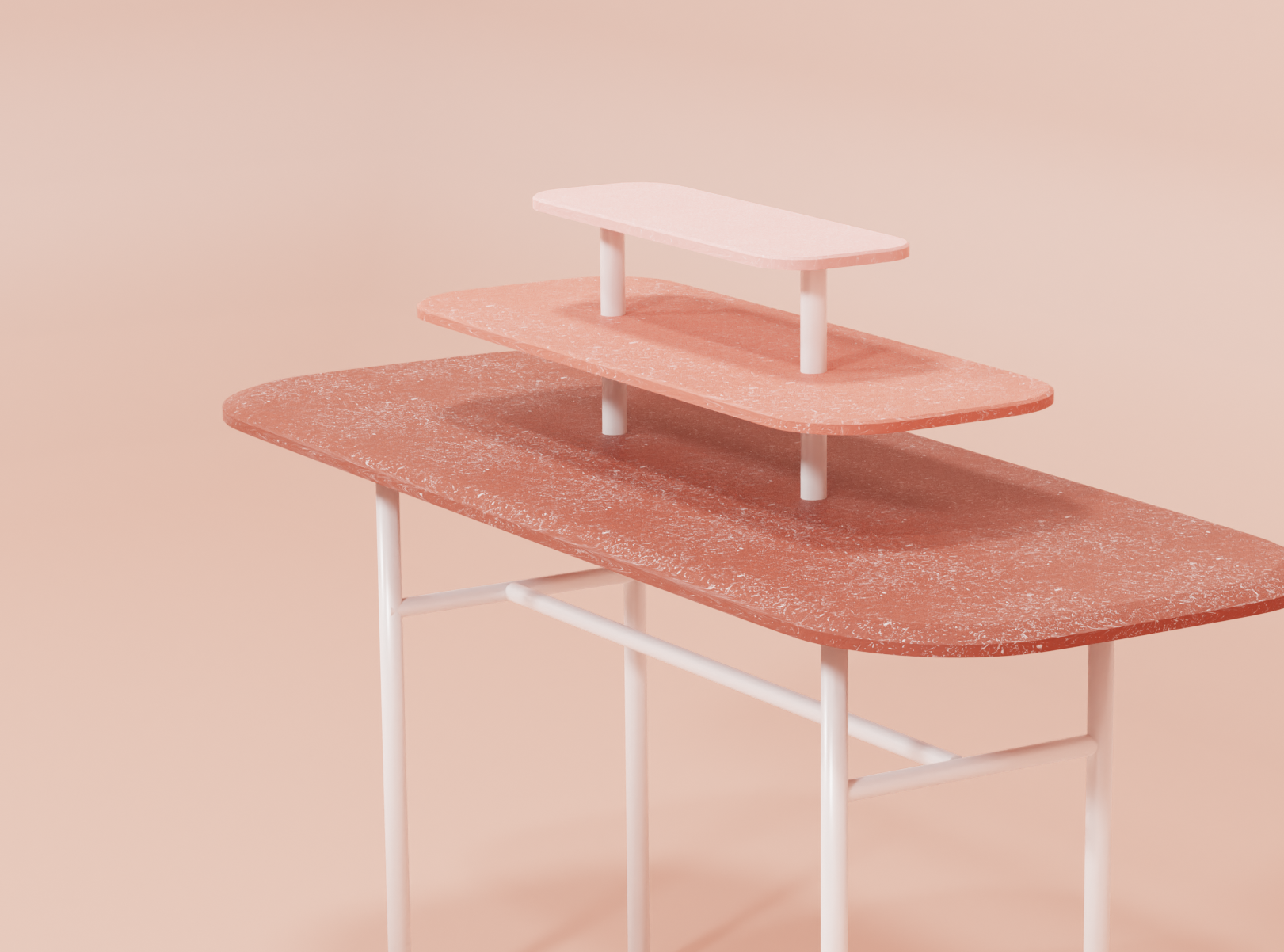 We worked around these scenarios to offer a hybrid object for the hotel, restaurant, and business sectors. It can be adapted to become a counter, a serving table, a dinner table, a simple or activity desk, a reception desk, a bar table, or a console.