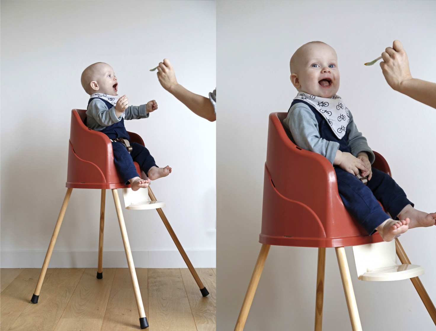 Childcare product design for the booster seat / high chair TUDI. Products were designed in our Studio and made in France for Thermobaby SAS, Auray France, 2019.