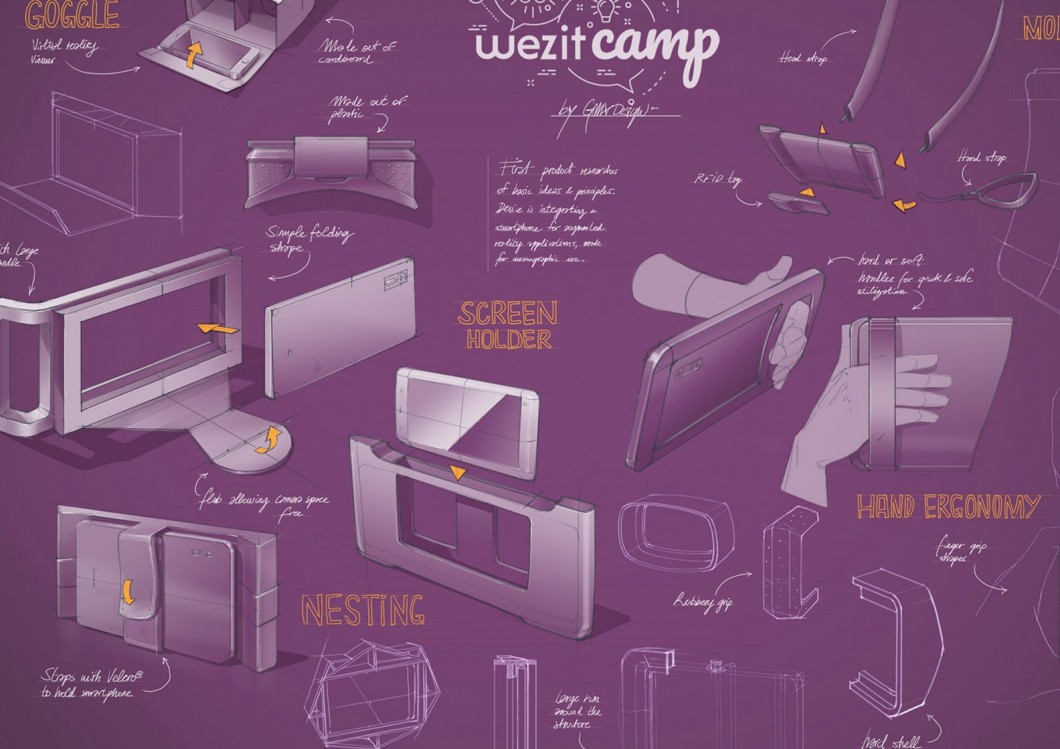 Design d'un étui pour smartphone conçu pour les expériences de musée VR/AR. Le produit est conçu et prototypé dans notre studio, réalisé pour le Wezit Camp de Mazedia, France, 2017
